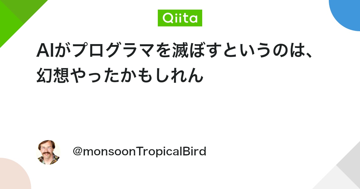 AIがプログラマを滅ぼすというのは、幻想やったかもしれん – Qiita