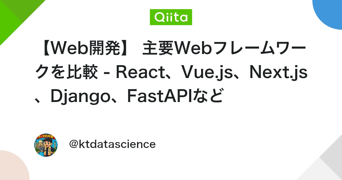 【Web開発】 主要Webフレームワークを比較 – React、Vue.js、Next.js、Django、FastAPIなど – Qiita