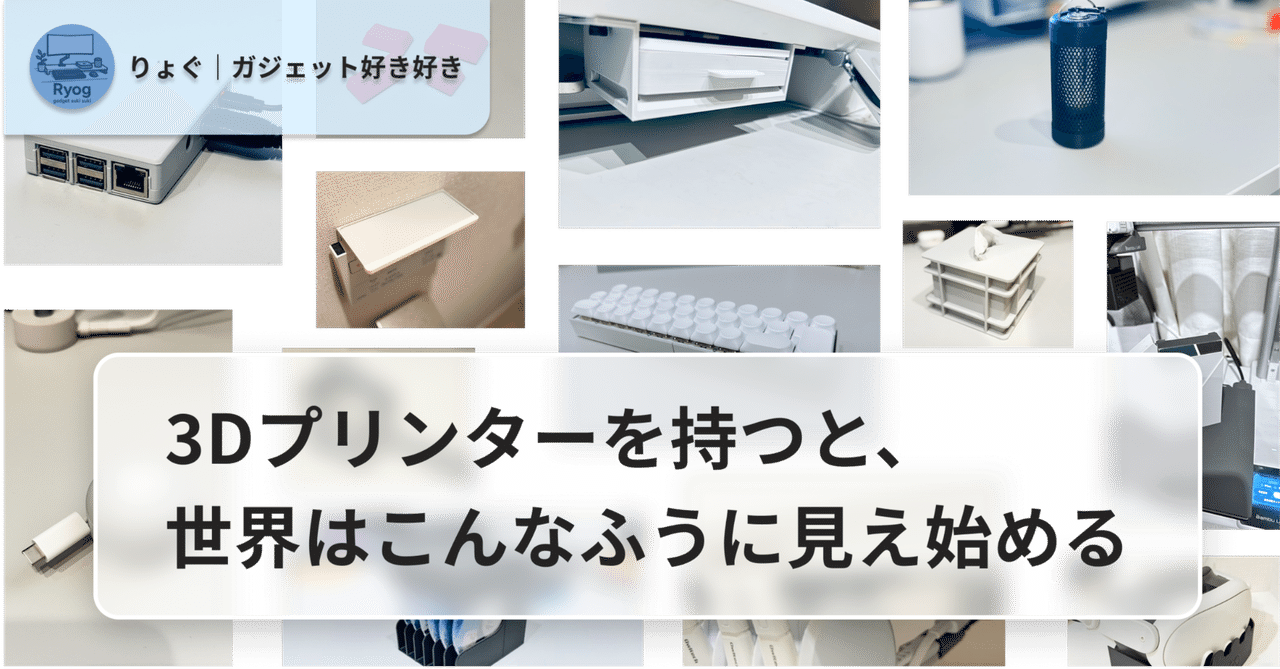 お疲れ様です。りょぐ(@ryog_gadgets)です。 3Dプリンターに手を出してから数年と数ヶ月、結構いろんなものを作ってきたと思うんですが、ただモノを手に入れたという事実以上に学んだこと、考えが変わったことが結構あることに気づきました。 これから「3Dプリンター買ってみようかな」と界隈に足を突っ込む方が増えたら良いなと思っているので、今回は3Dプリンターを使ってみて学んだことを振り返って書いてみようと思いました。 1.前書き(飛ばしてもろて) 僕は、とある企業のフロントエンドエンジニア、いわゆるプログラムを書く人です。物理的なプロダクトを作る仕事ではありません。 元々、