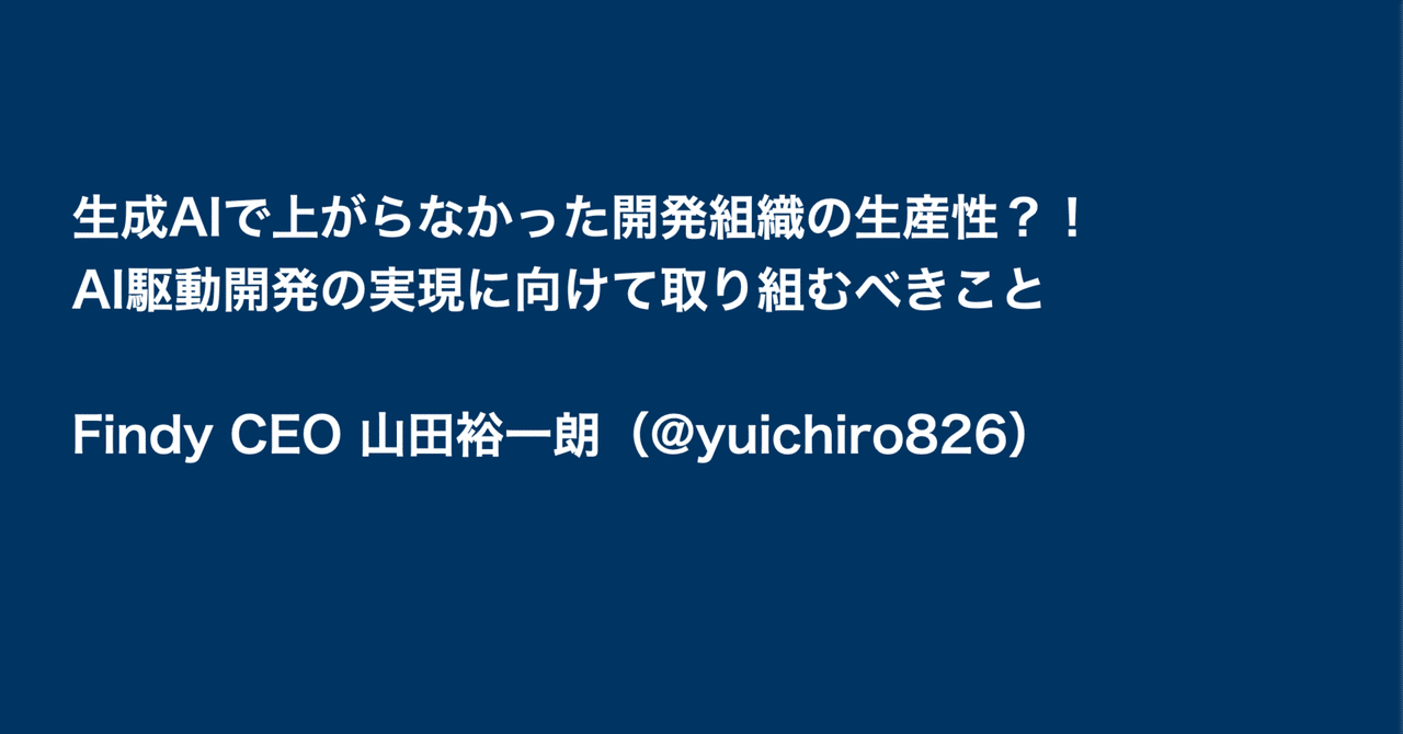 - 生成AIで上がらなかった開発組織の生産性?! – AI駆動開発の実現に向けて取り組むべきこと|山田裕一朗(CEO at Findy Inc.)