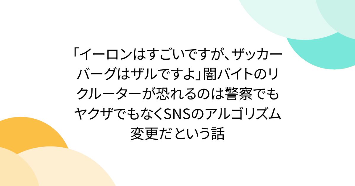 4. 「イーロンはすごいですが、ザッカーバーグはザルですよ」闇バイトのリクルーターが恐れるのは警察でもヤクザでもなくSNSのアルゴリズム変更だという話