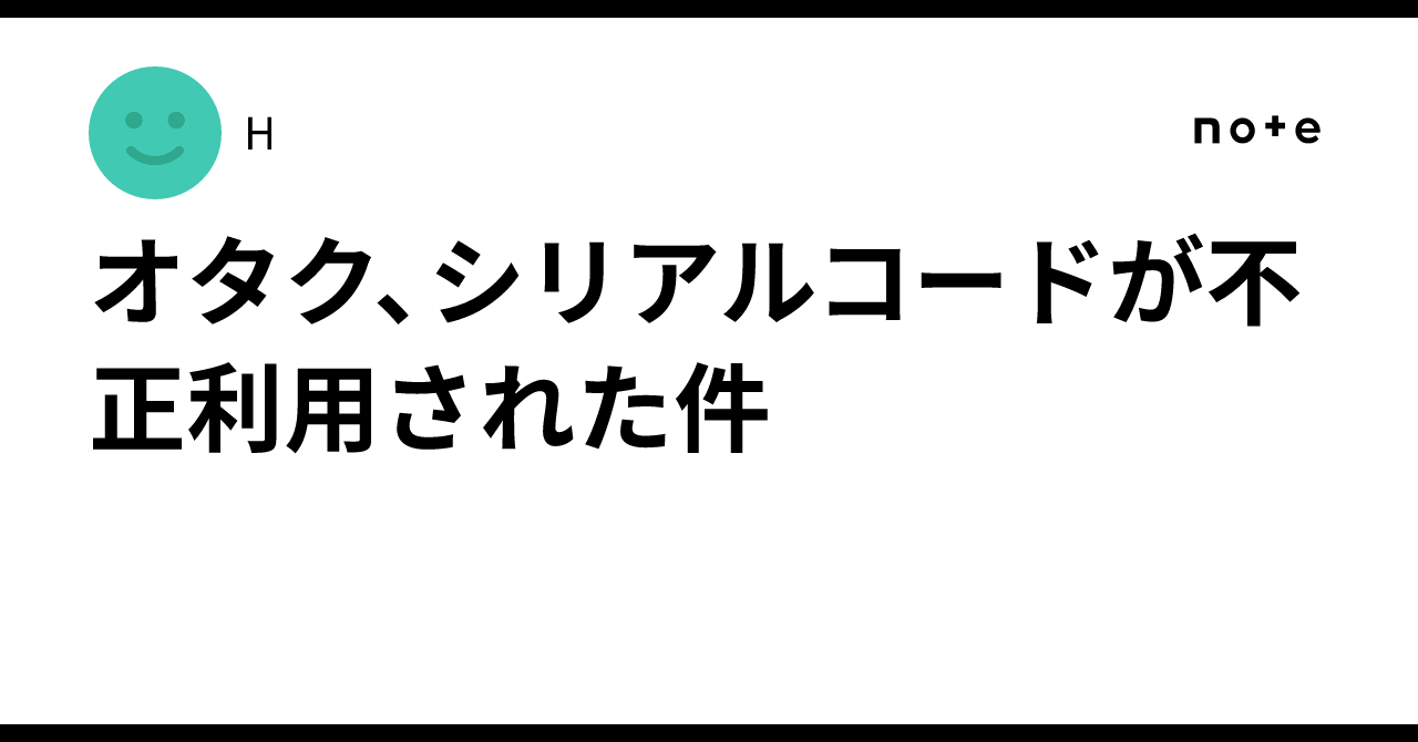 オタク、シリアルコードが不正利用された件|H
