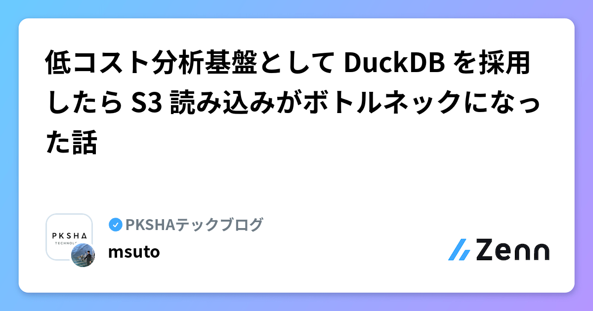 28. 低コスト分析基盤として DuckDB を採用したら S3 読み込みがボトルネックになった話