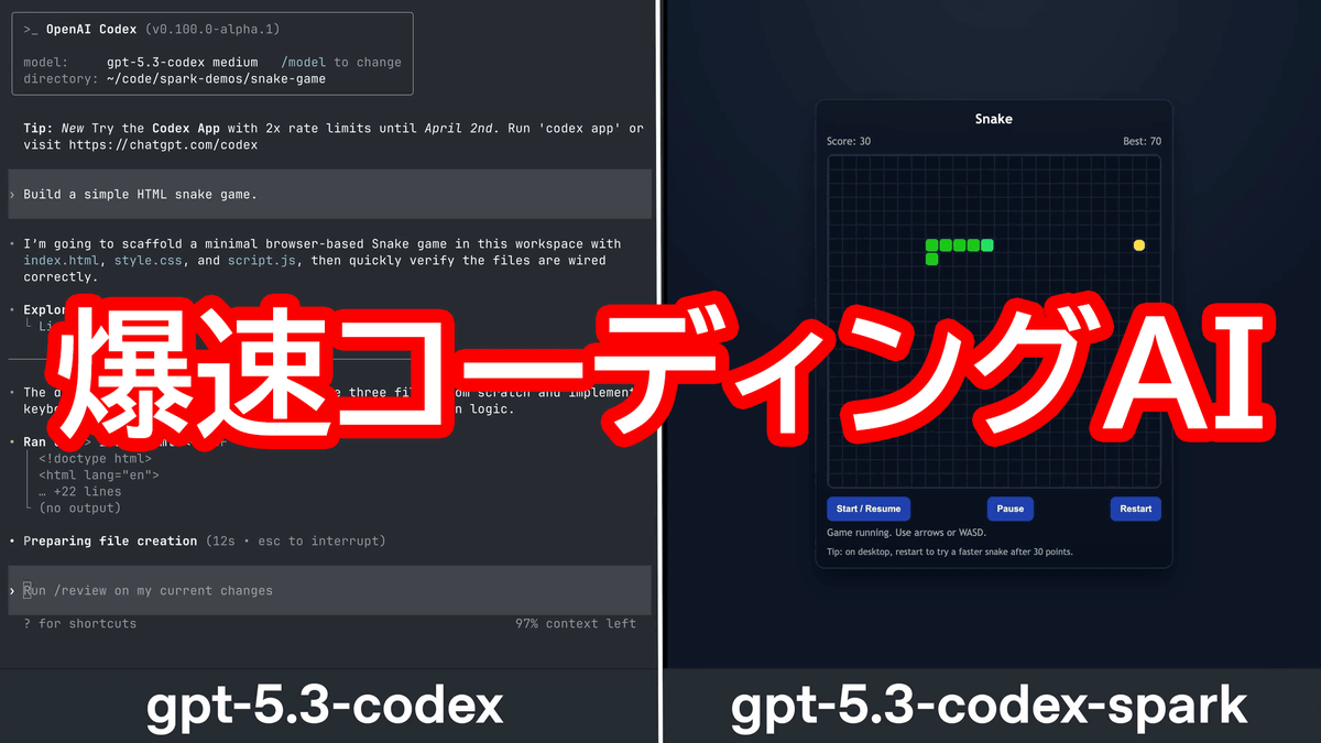 40. OpenAIが超高速コーディングAI「GPT-5.3-Codex-Spark」を発表、NVIDIA以外のAIチップで高速動作を実現しリアルタイムコーディングを可能に