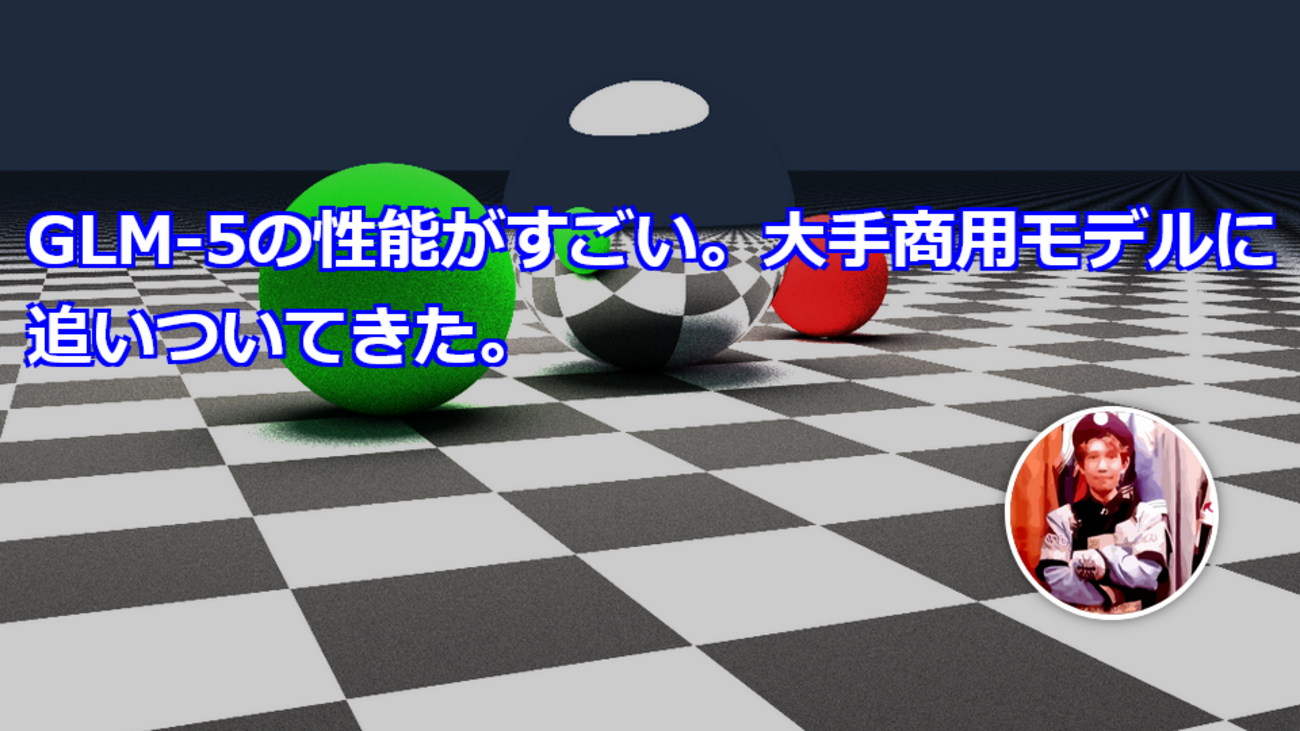 GLM-5が出ていたので、公式サイトで試してみました。 https://chat.z.ai/ ちょっと触った感じ、かなり賢く、複雑なコードも書け、日本語もうまく表現力が高いです。 これは大手の商用モデルに追いついてきているように思います。 公式ブログはこちら。 https://z.ai/blog/glm-5 問題は、モデルがオープン化されるのかどうか、というところ。 ウェイトも公開されています。744B-A40Bの模様(2:45追記) https://huggingface.co/zai-org/GLM-5 パストレーシング 「HTML+JSでパストレーシングを作って」で、エラーを一回出しただ…
