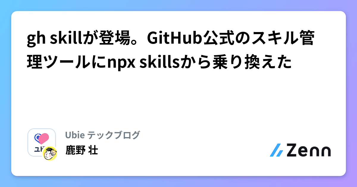 gh skillが登場。GitHub公式のスキル管理ツールにnpx skillsから乗り換えた