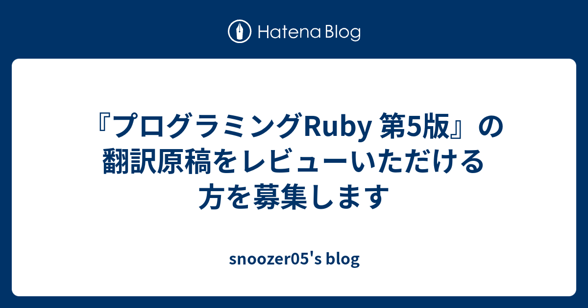 35. 『プログラミングRuby 第5版』の翻訳原稿をレビューいただける方を募集します – snoozer05's blog
