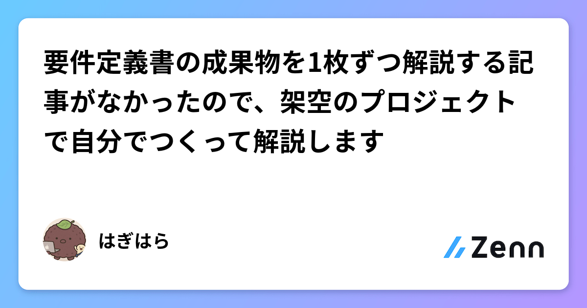 要件定義書の成果物を1枚ずつ解説する記事がなかったので、架空のプロジェクトで自分でつくって解説します