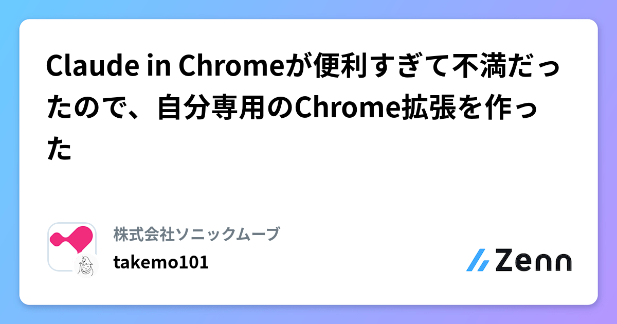 24. Claude in Chromeが便利すぎて不満だったので、自分専用のChrome拡張を作った