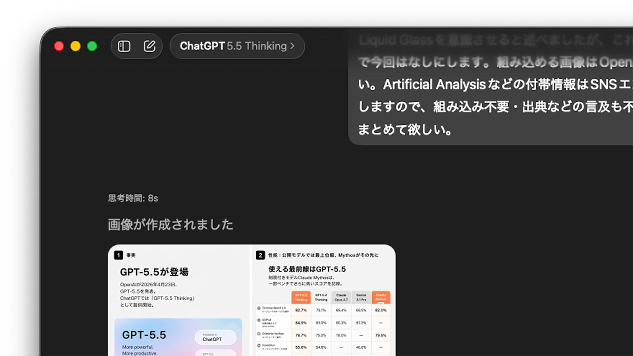 - OpenAIが「GPT-5.5」をリリース、Claude Opus 4.7を上回る性能