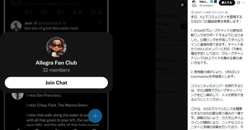 - X、コミュニティ機能廃止……「利用率0.4%」「スパムだらけ」で 代替は“グルチャ”